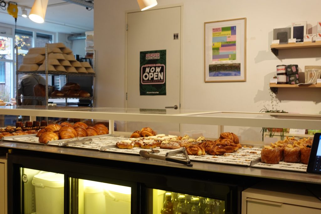 1人平日休みはとても久しぶり。たまには自分のご褒美にでもということで Harvest Cafe & Bakery というLeuvehavenにあるカフェへやって来た。平日だからまだそこまで混んでいないかなと思っていたが完全に的外れ。バーテーブルが2席空いているだけで他満席!さすが大人気カフェだ。ここはベーカリーにも力を入れていて、お店を入ると目の前に美味しそうなペイストリーやパンが並ぶ。オランダに来てクロワッサンにハマり始めてから色々なベーカリーで試してきたが、未だHarvestのクロワッサンは味見したことがない。ということで今回はお金を奮発して(一つ3€とお高めなので😂)、私とルカスの分2のクロワッサンをお持ち帰りで購入。後ほど一緒に食べるのが楽しみだ。