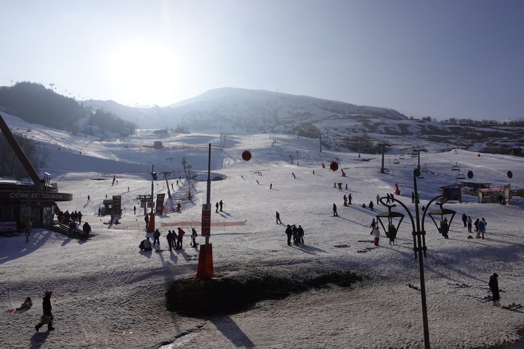 頑張った後、遂にリゾート地 Le Corbier に到着。