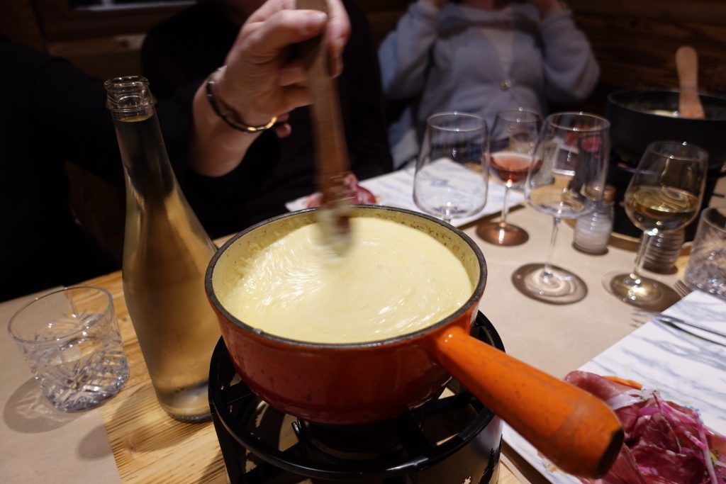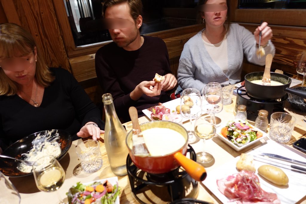 もちろん、注文するものは既に確定済み。アルプス周辺といえば、美味しいチーズ。寒い中食べるチーズといえばフォンデュ!!!チーズは滞在中食べまくっていたけど、チーズフォンデュを食べないでアルプスを去るわけにはいかない。