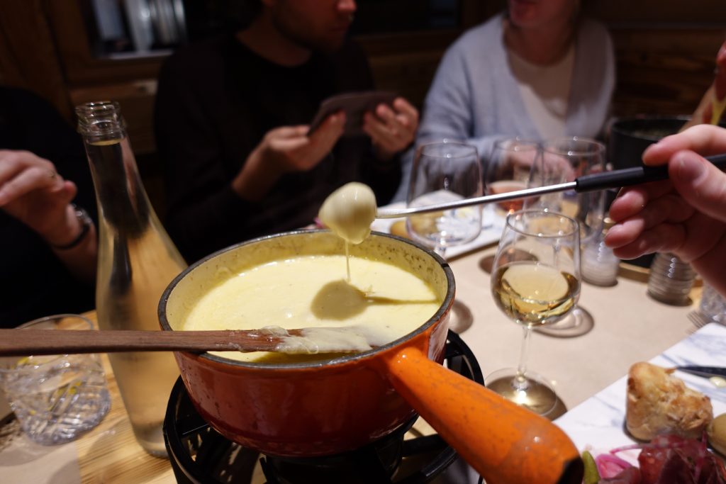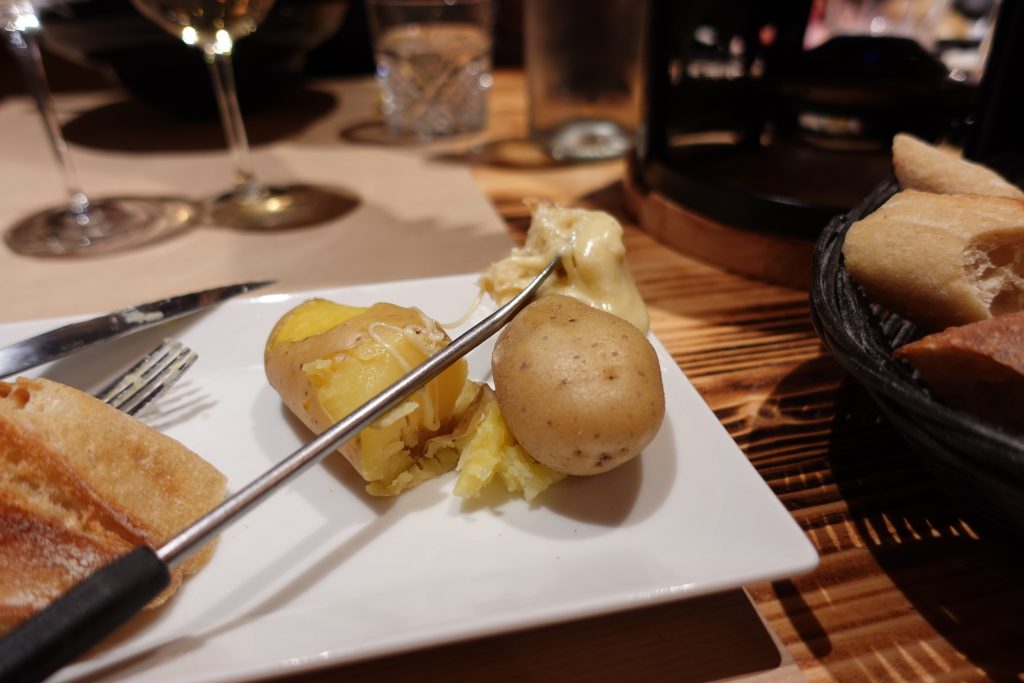 ちなみにチーズフォンデュの他にもラクレットもメニューにあって、私のパートナーともう1人の友達はラクレットを注文。味見してみたけど、ラクレットチーズが焼き溶かされることにより、普通のチーズでは味わえないスモーキーさが加わっておりとても美味しかった。