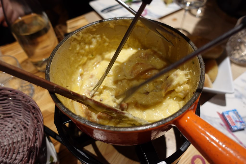 こんな旨味が詰まったチーズ料理を食べたの、人生初めて。日本でチーズフォンデュと言って食べてたのはチーズフォンデュではなかった…。今まで知らなかったけど、チーズフォンデュには少なくとも2種類以上のチーズが使用されているらしい。旨味が凝縮されている理由がわかる。