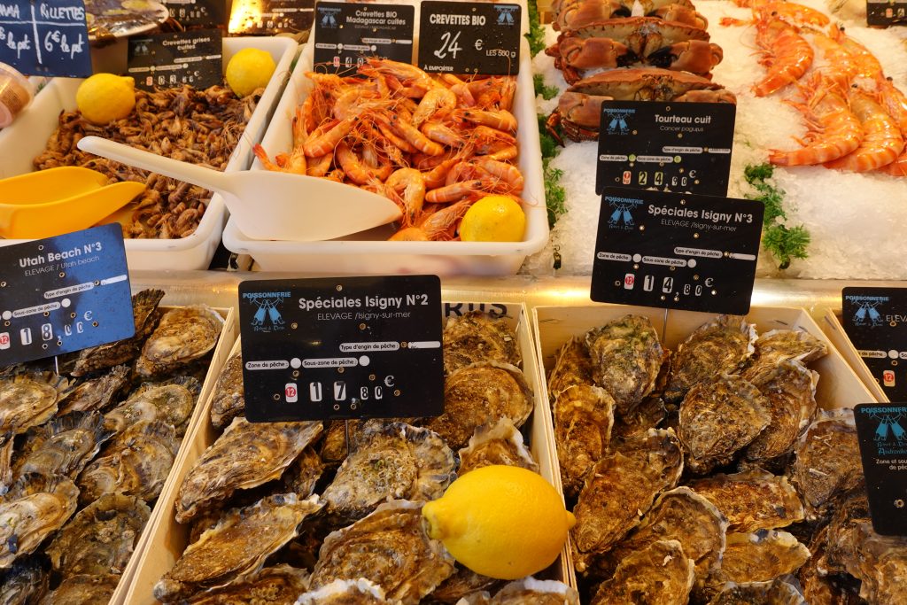 こちらの町に来た一番の目的、それは新鮮な魚介類を食べること!文頭にて説明したように、トゥルーヴィルは漁師町。橋を渡り大通りに沿ってある行くと、多くの人で賑わう魚市場に辿り着く。